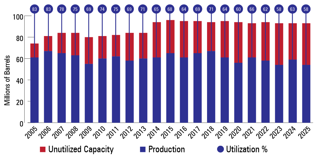 Figure 3. U.S. Virgin Base Oil Plant Utilization