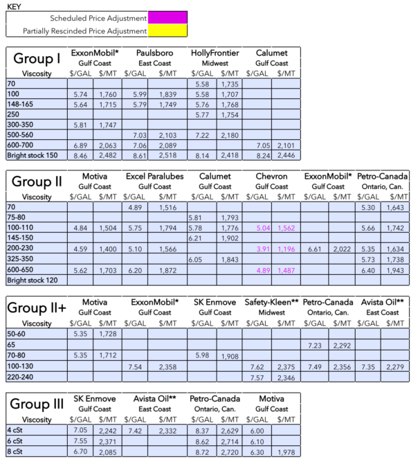 Archived base oil price reports can be found through this link: https://www.lubesngreases.com/category/base-stocks/other/base-oil-pricing-report/
