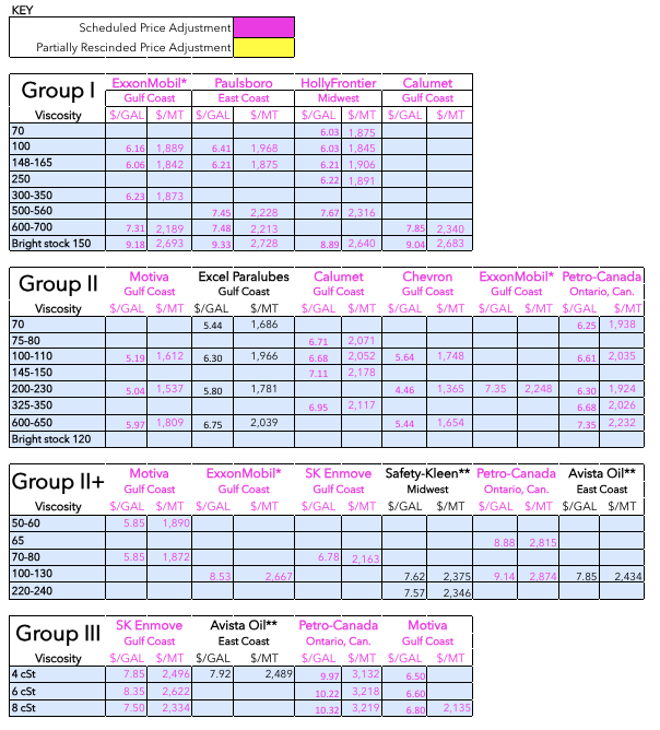 Archived base oil price reports can be found through this link: https://www.lubesngreases.com/category/base-stocks/other/base-oil-pricing-report/