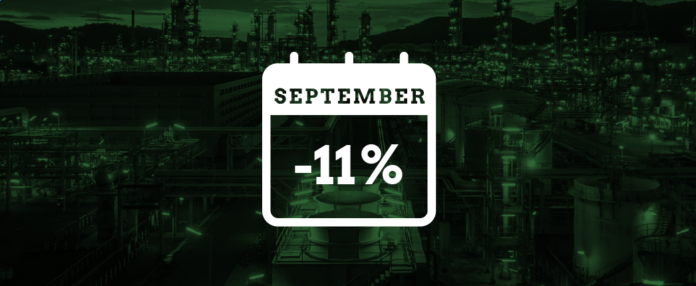 The 4.5 million barrels of base oils that the nation’s refiners produced in September represented a slight step back from 4.6 million barrels made in August, but it was significantly closer to recent norms for the corresponding months. August’s output was 20% less than the average for that month in the five previous years. Since March U.S. output ranged between 13% and 25% less than the five-year average for corresponding months.