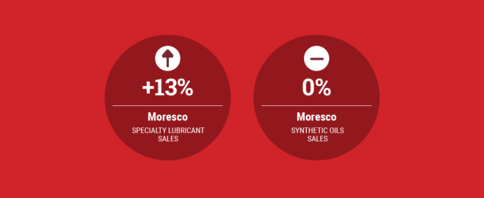 Sales of specialty lubricants for the full-year period increased mainly due to a recovery trend in automobile production in each country and region where Moresco sells its products, the company said. It also noted the expansion of its sales of cutting fluids was progressing.
