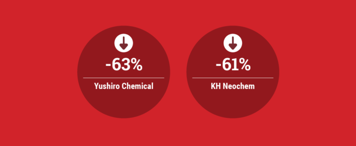 The impacts of soaring raw material prices and lockdowns due to the COVID-19 pandemic hindered second-quarter profits for Japan’s Yushiro Chemical and KH Neochem’s performance materials segment. Yushiro said this was despite revised sale prices, while KH Neochem noted rising logistics costs as another key factor.