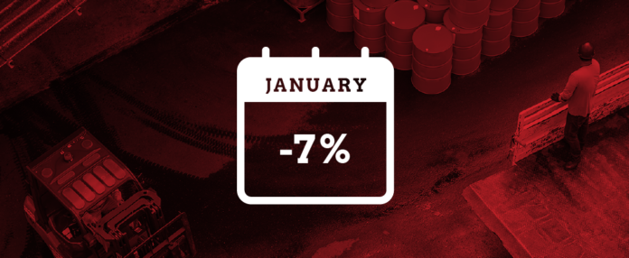 Sequentially, January’s figure – the lowest since 68,909 kL last August – was down 9% from 113,474 kL in December.