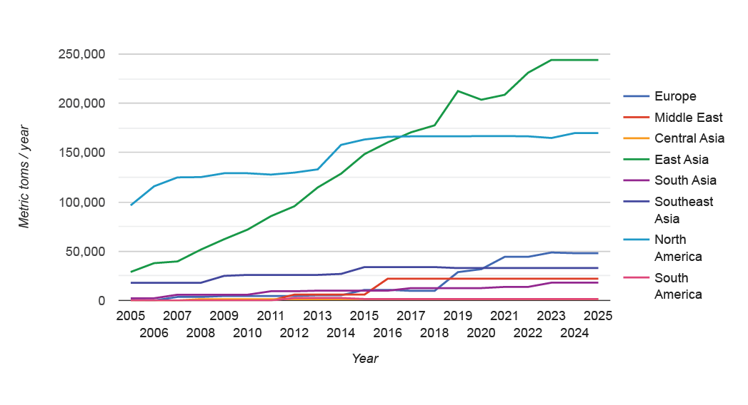 Europe’s sharp and permanent Group I exits, followed by Japan-led rationalization in Asia and reductions in North America, illustrate how early regulating and high-cost regions absorbed the first wave of asset retirements. These closures were decisive and irreversible, and critically they were not offset by new Group I builds elsewhere. Instead, capacity growth shifted toward fewer, larger and more capital-intensive Group II and Group III projects, often commissioned as discrete world-scale additions rather than incremental expansions.