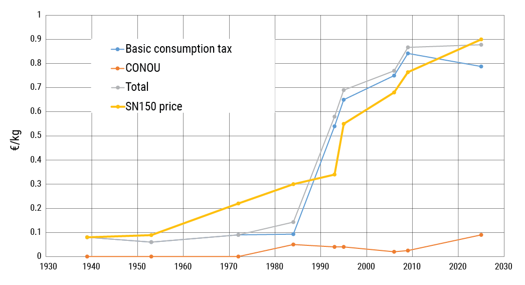 In the 1970s, a broad tax reform shifted taxes on petroleum products, including lubricants, from a production to consumption basis. The tax on mineral lubricants was set at €0.09/kg. In 1993 that rate was jacked up six-fold to €0.54/kg. Two years later it was raised again to €0.75/kg, and today it is €0.78781/kg.