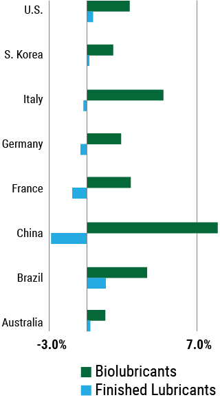 The movement seems to be having the expected effect: The growth rate of demand for biolubricants has outpaced demand for all lubes for the past few years and is projected to continue doing so in years to come.