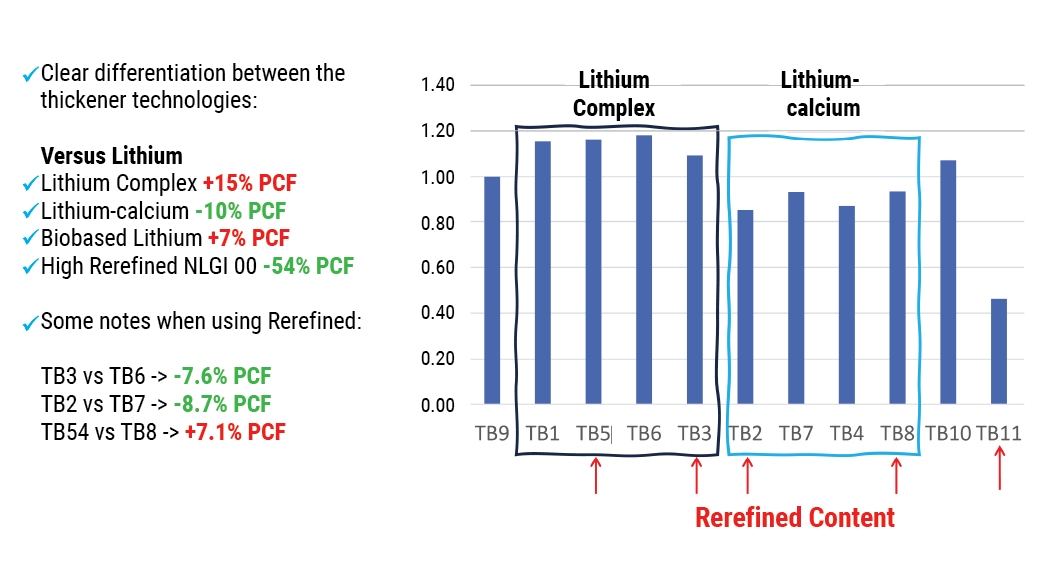 Lithium-calcium thickeners generate less emissions than conventional lithium because the calcium allows for less use of lithium, which is more intense in emissions generated.