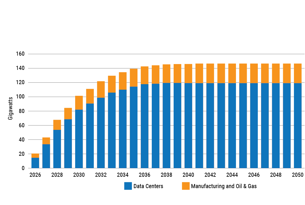 Mostly driven by AI, the International Energy Agency (IEA) expects global electricity consumption for data centers to double by 2030, reaching around 945 terawatt hours, equivalent to the electricity consumption of Japan in 2022. In the United States, energy demand for data centers is roughly three times as big as demand for manufacturing and oil and gas facilities in 2026, according to S&P Global, but is expected to be about six times as large in a decade, despite significant growth in demand for manufacturing and oil and gas. (See Figure 1.) Immersion cooling of data centers could have a compounded annual growth rate of 24.2% out to 2032, as immersion cooling is expected to also gain market share with new builds.